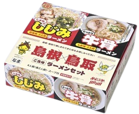 「松江ラーメンしじみ醤油味」と鳥取県中部発祥ご当地ラーメン「鳥取牛骨ラーメン」を2食ずつセットにしました。